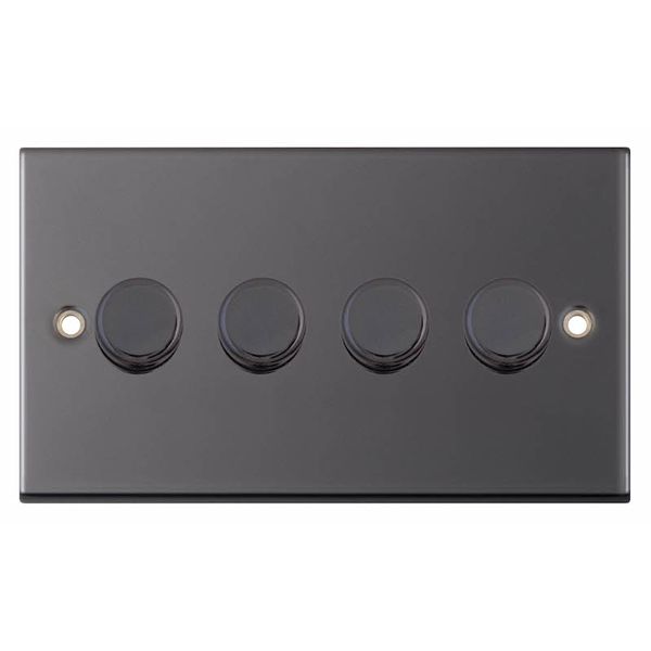 The Selectric 4 Gang 2 Way Dimmer Switch provides high-capacity control in a black nickel finish with a black insert. This unit features four independent push on/off dimmers, each capable of handling dimmable LED lamps up to 100W or incandescent and halogen lamps up to 150W.