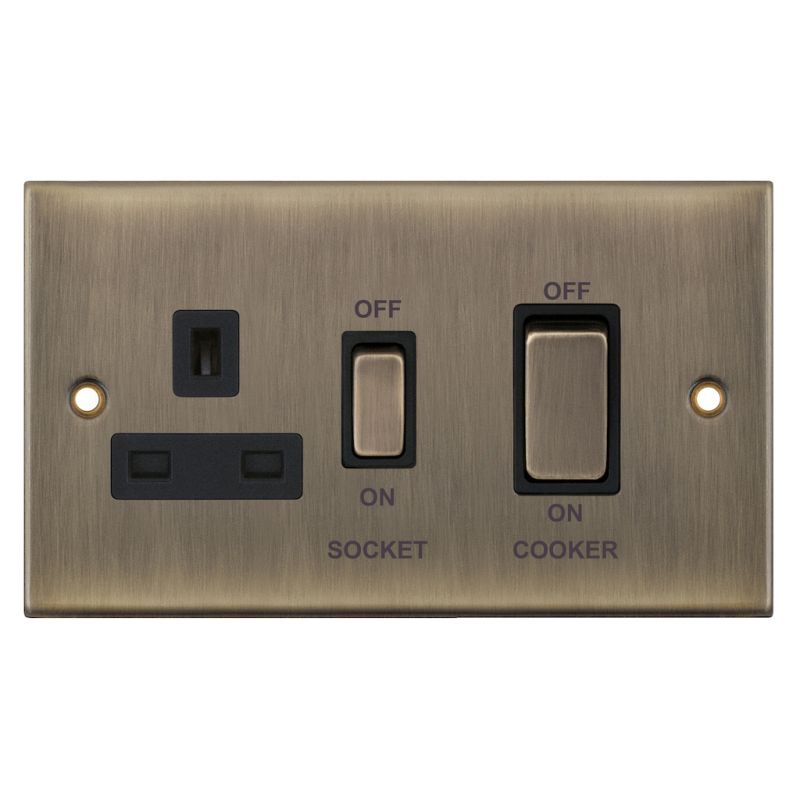 45 Amp Cooker Unit w/ 13 Amp Switched Socket Black Insert Selectric Switches Antique Brass