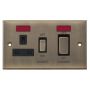 45 Amp Cooker Unit w/ 13 Amp Switched Socket & Neon Selectric Sockets Antique Brass