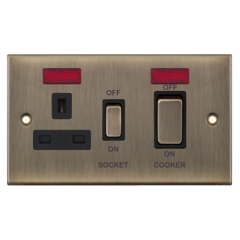 This is the Selectric 45 Amp Cooker Unit w/ 13 Amp Switched Socket & Neon Antique Brass.
