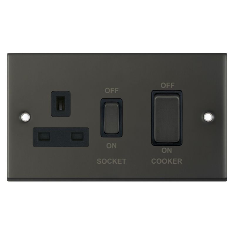 45 Amp Cooker Unit with 13 Amp Switched Socket Black Insert Selectric Cooker Switches Dark Bronze