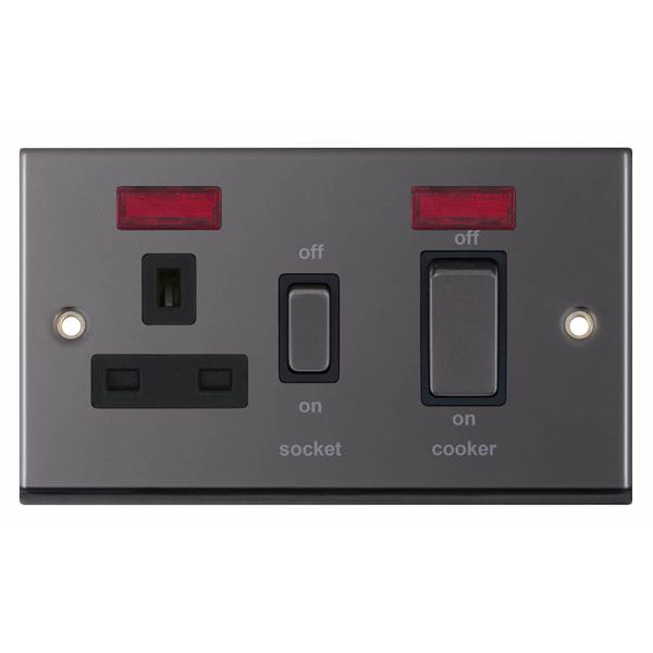 45 Amp Cooker Unit with 13 Amp Switched Socket Neons Selectric Sockets Black Nickel