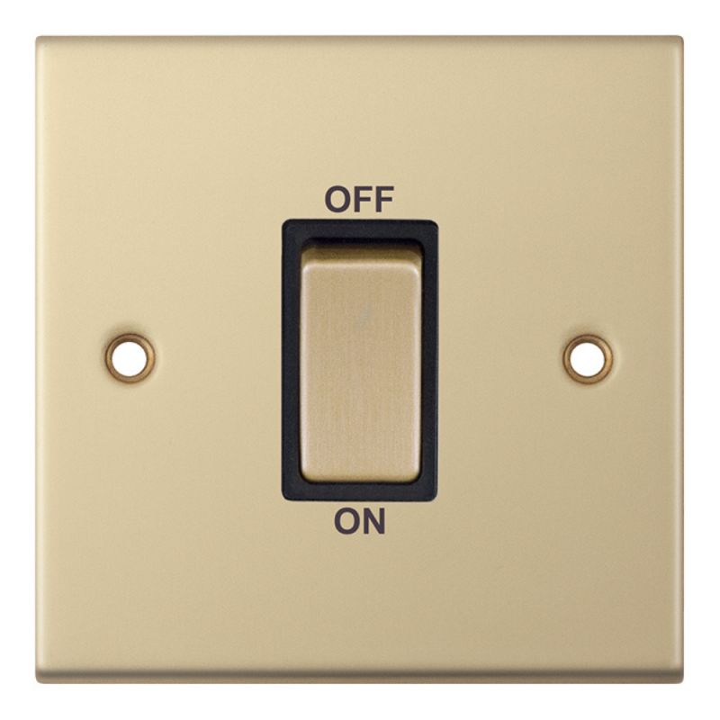 - Colour: Satin Brass with matching metal rocker and black insert – marked “OFF / ON”
