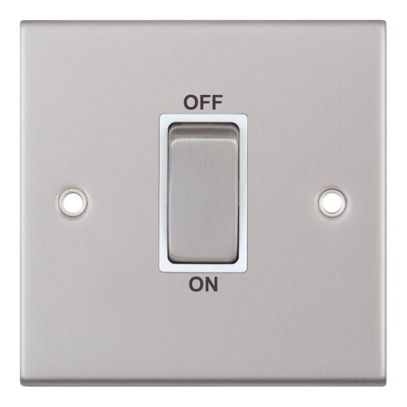 This is the Selectric 45 Amp DP Switch 1 Gang Plate Satin Chrome w/ White Insert.