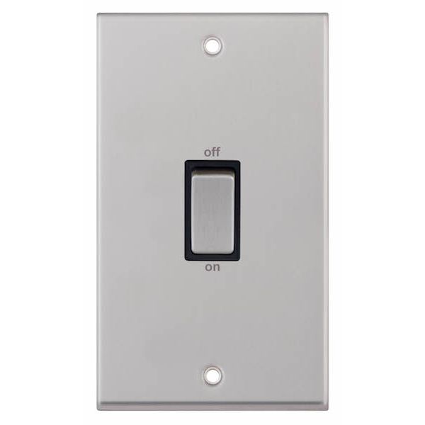 This is the Selectric 45 Amp Double Pole Switch – 2 Gang Plate in a Satin Chrome finish. It is suitable for switching domestic, commercial, and industrial appliances where higher current ratings are required, such as cookers and heater units. The switch features matching curved metal rockers for a cohesive, contemporary appearance and requires a minimum back box depth of 47mm for installation.