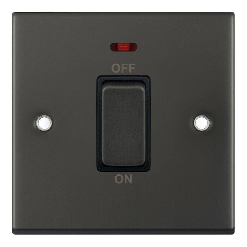 The Selectric 45 Amp Double Pole (DP) Switch in dark bronze is designed for high-current applications, making it suitable for controlling heavy-duty domestic, commercial, and industrial appliances such as cookers and large heater units. This single-gang plate features an integrated neon indicator that provides a clear visual confirmation when the power is active.