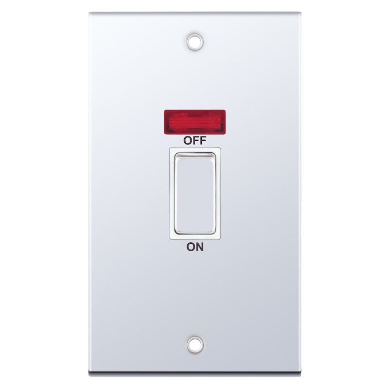 45 Amp DP Switch with Neon 2 Gang Plate White Insert Selectric Switches Polished Chrome