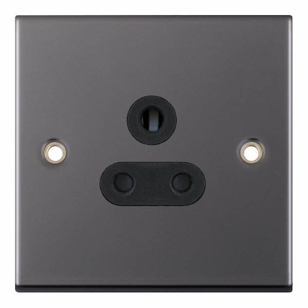 5 Amp Round Pin Socket 3 Pin Unswitched Black Insert Selectric Sockets Black Nickel