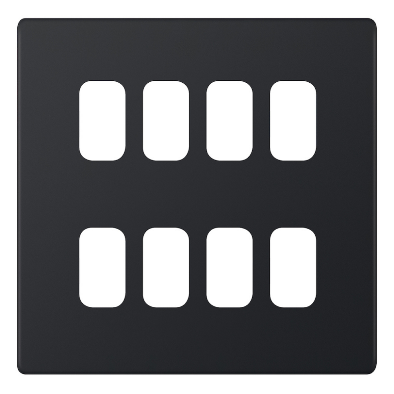8 Aperture Modular Plate 5M-PLUS Selectric 8 Gang Grid Faceplate Matt Black