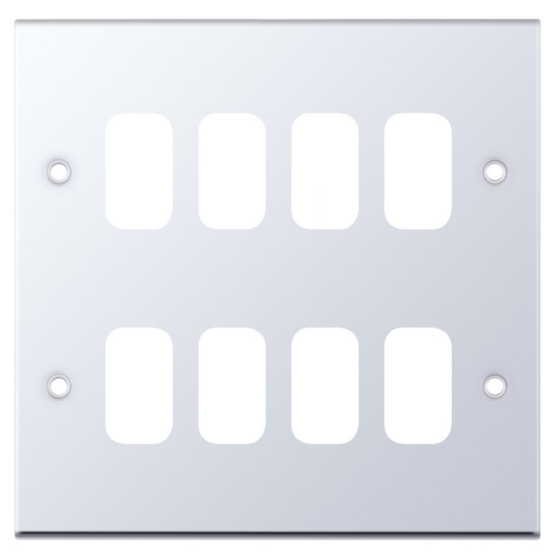 8 Aperture Modular Plate 5M Selectric 8 Gang Grid Faceplate Polished Chrome