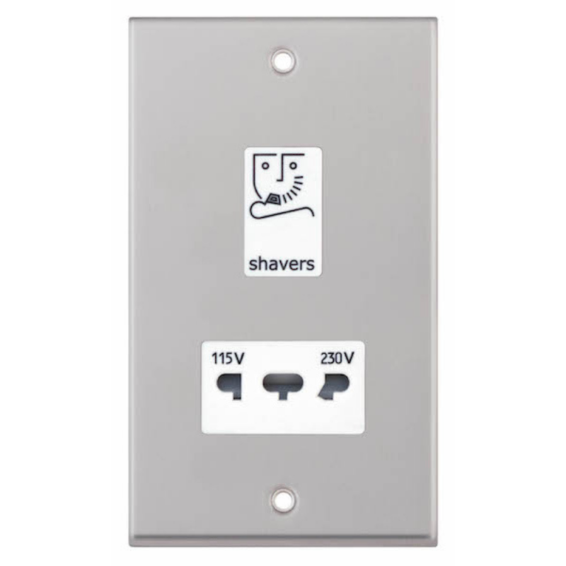 Dual Voltage Shaver Socket 115V & 230V Output Selectric Sockets Satin Chrome