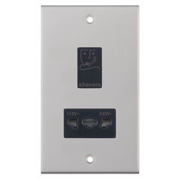 Dual Voltage Shaver Socket 115V & 230V Black Insert Selectric Sockets Satin Chrome