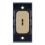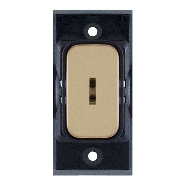 20A DP 1 way key-operated modular switch in satin brass with black insert, designed for Selectric GRID360 modular plates.