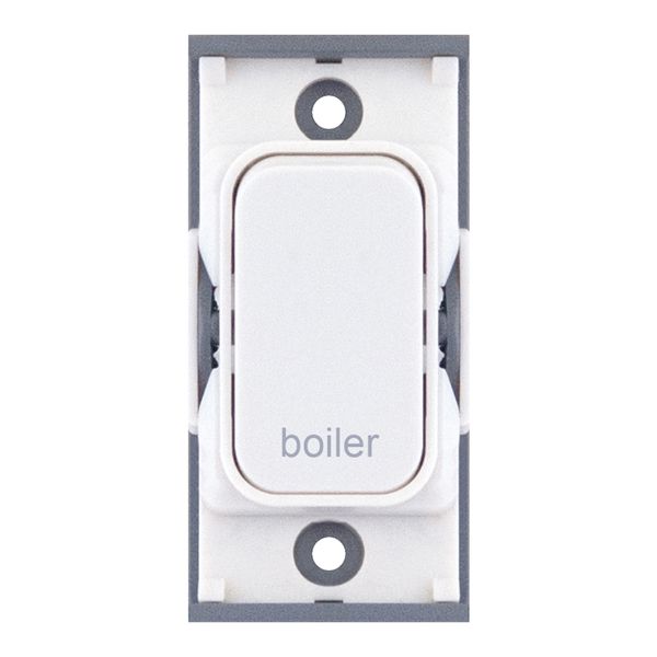 20A double pole modular switch engraved “Boiler” in white. Provides safe and clearly identified isolation for boiler circuits. Compatible with all Selectric GRID360 plates.