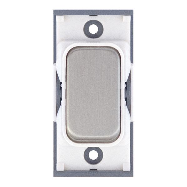 10 Amp retractive (momentary) modular switch from the Selectric GRID360 range, finished in satin chrome with a white insert. Compatible with all GRID360 modular plates.
