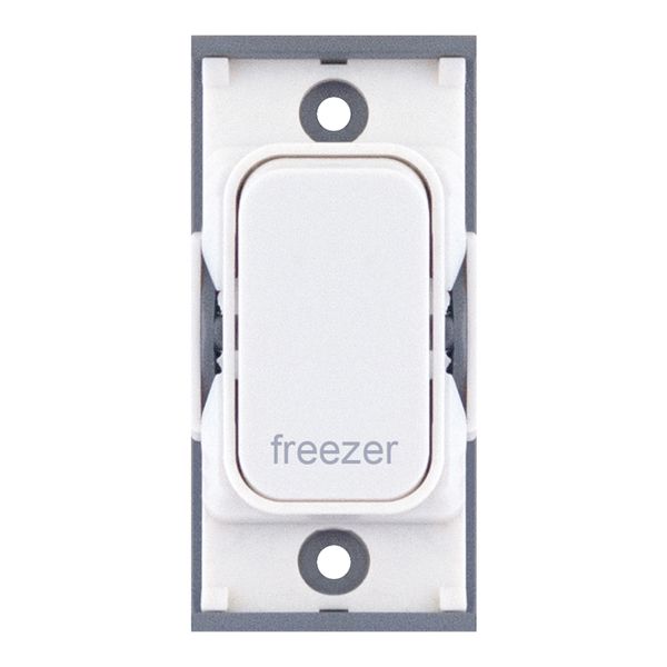 20A double pole modular switch engraved “Freezer” in white. Provides safe, clearly labelled isolation for freezer circuits. Compatible with all Selectric GRID360 plates.