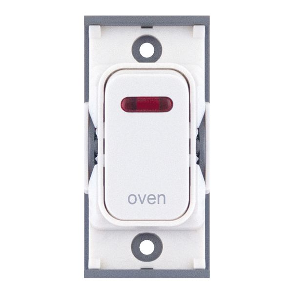 20A double pole modular switch with neon indicator, engraved “Oven” in white. Designed for safe and clearly labelled oven isolation within the Selectric GRID360 range.