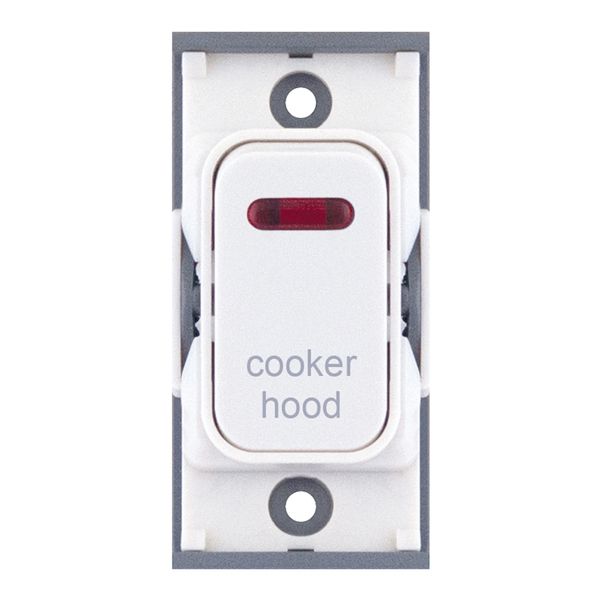 20A double pole modular switch with neon indicator, engraved “Cooker Hood” in white. Designed for safe and clearly labelled cooker hood isolation within the Selectric GRID360 system.