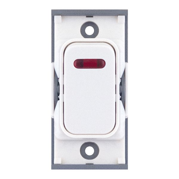 20 Amp double pole modular switch with neon indicator from the Selectric GRID360 range, finished in matt white with a white insert. Compatible with all GRID360 modular plates.