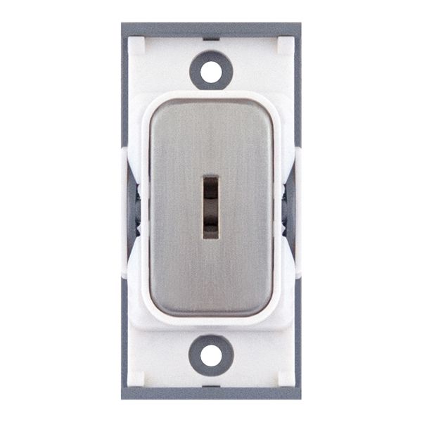 20A DP 1 Way key switch module for the Selectric GRID360 system, finished in satin chrome with white insert and supplied with fixing screws.