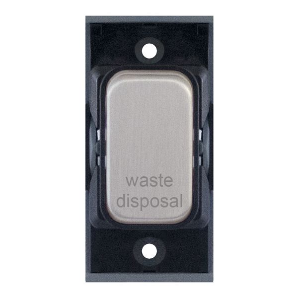 20A double pole modular switch engraved “Waste Disposal” in satin chrome with black insert. Compatible with Selectric GRID360 modular plates for safe, clearly labelled appliance isolation.