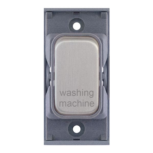 20A double pole modular switch engraved “Washing Machine” in satin chrome with grey insert. Designed for safe appliance isolation and fully compatible with Selectric GRID360 modular plates.