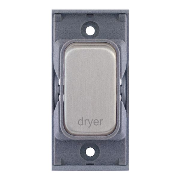 20A double pole modular switch engraved “Dryer” in satin chrome with grey insert. Designed for safe appliance isolation and compatible with all Selectric GRID360 modular plates.