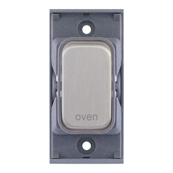 20A double pole modular switch engraved “Oven” in a satin chrome finish with grey insert. Designed for safe appliance isolation and fully compatible with Selectric GRID360 modular plates.