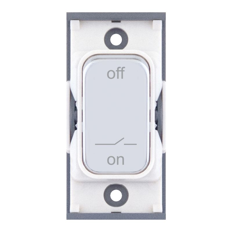 10 Amp fan isolator modular switch in polished chrome with white insert. Part of the Selectric GRID360 system for safe, flexible fan isolation.