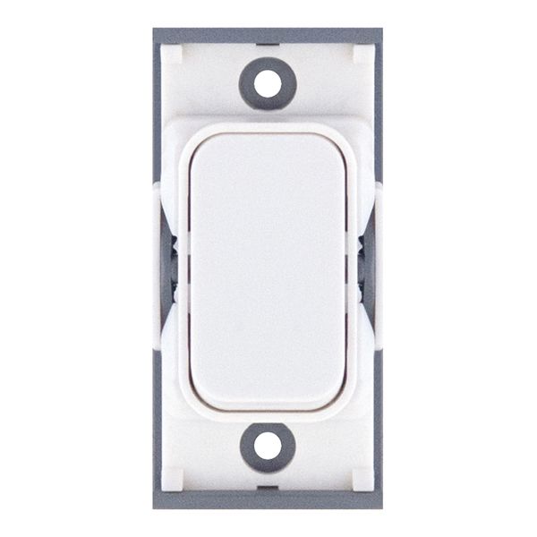 10 Amp retractive (momentary) modular switch from the Selectric GRID360 range, finished in white with a white insert. Compatible with all GRID360 modular plates.
