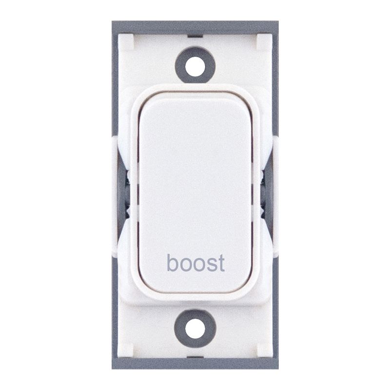 20A double pole modular switch engraved “Boost” in white. Designed for clearly labelled appliance control and compatible with all Selectric GRID360 plates.