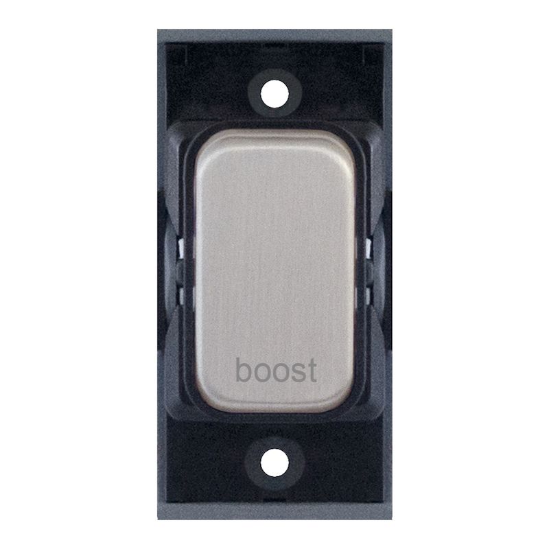 20A double pole modular switch engraved “Boost” in satin chrome with black insert. Designed for safe appliance isolation and fully compatible with Selectric GRID360 modular plates.