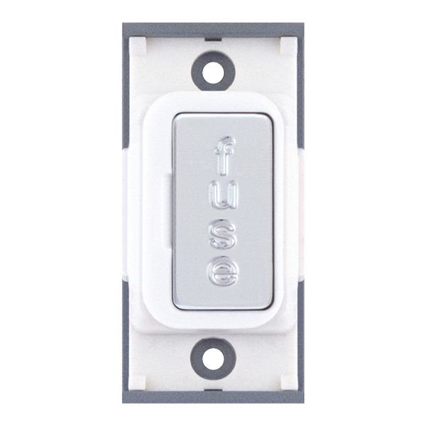 13 Amp fused connection unit module from the Selectric GRID360 range, finished in polished chrome with a white insert.
