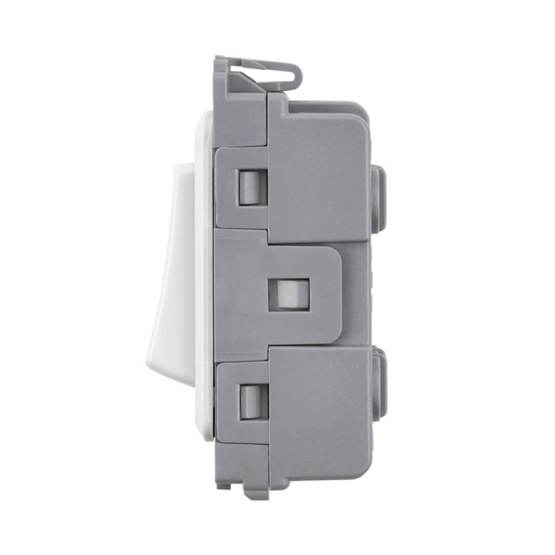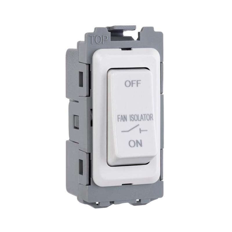 This fan isolator switch can be easily clipped into any grid plates with the snap lock design in this range.