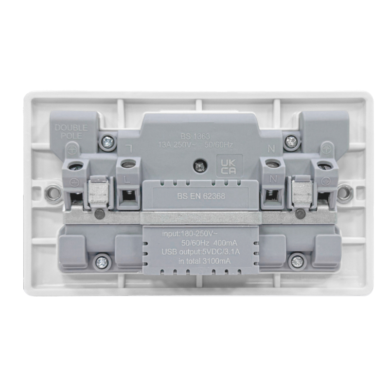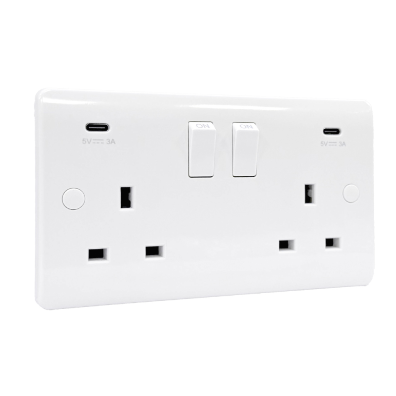 Zahler 13 Amp 2 Gang Switched Socket 2 x USB Type C Zahler Curve USB Sockets White