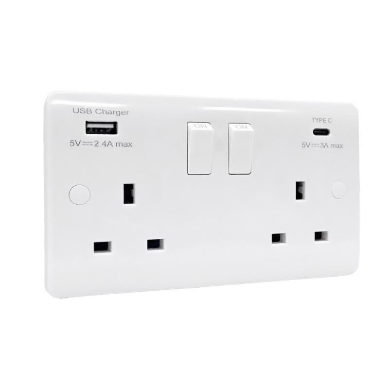 Zahler 13 Amp 2 Gang Switched Socket USB Type C / Type A Zahler Curve USB Sockets White