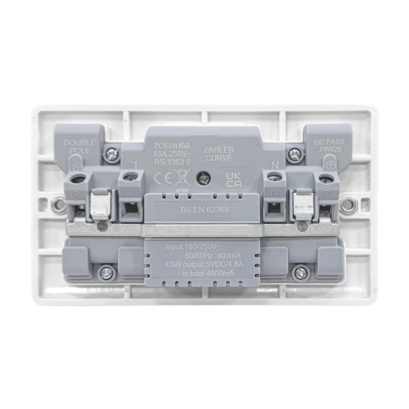 This Zahler 13 Amp 2 Gang USB Type C / Type A Switched Socket comes with a warranty of 3 years. Screw cap covers and fixing screws are supplied with the product.
