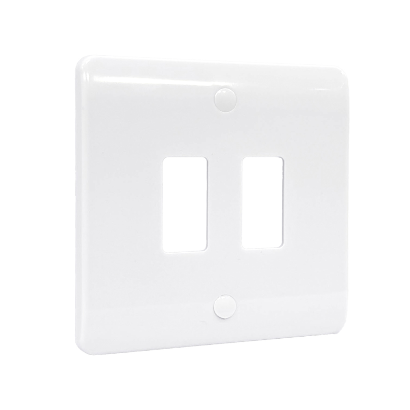 Zahler 2 Aperture 2 Gang Grid Plate Zahler Curve 2 Gang Grid Faceplate White