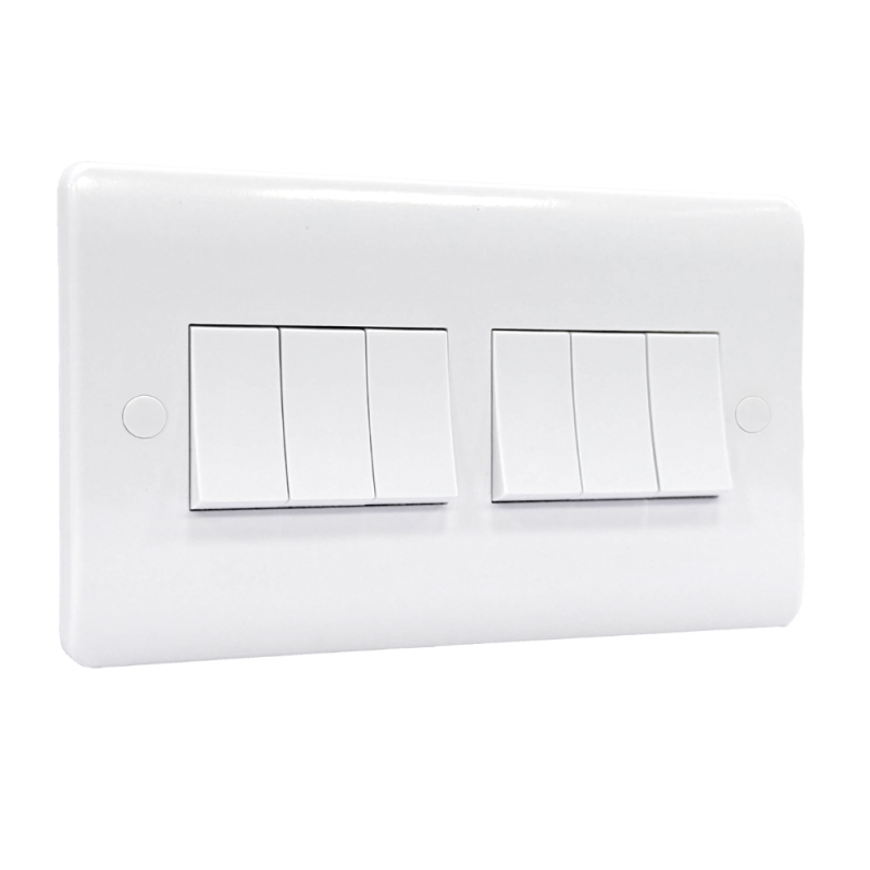 Zahler 6 Gang 2 Way Plate Switch Zahler Curve Switches White