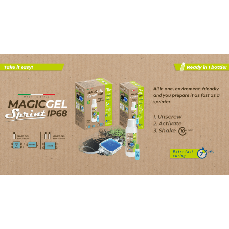 Ray Tech's Magic Gel Sprint incorporates dielectric, sealing and thermal features which is ideal for every sort of indoor/outdoor installation, including submerged installations in salt water (sea) and chlorinated water (pools).