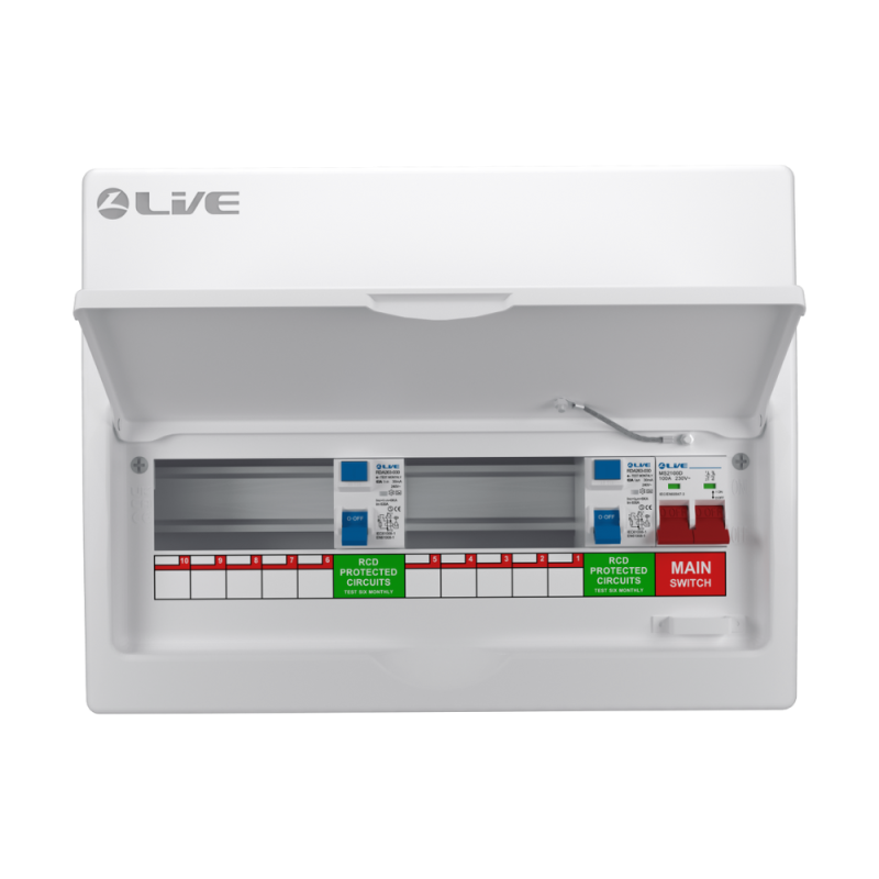 Live 16 Module Split Load c/w 100A Main Switch / 2 x 63A 30mA RCD Live Electrical