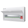 The unit features a 100 Amp main switch for safe isolation of the electrical supply when required. It also includes an integrated 20/40kA double pole surge protection device to help protect connected circuits and electrical equipment from voltage spikes and transient surges. With space for up to 22 modules, it offers greater capacity for larger or more complex circuit configurations. The durable metal enclosure is designed for surface mounting, providing strong protection while complying with modern wiring requirements.