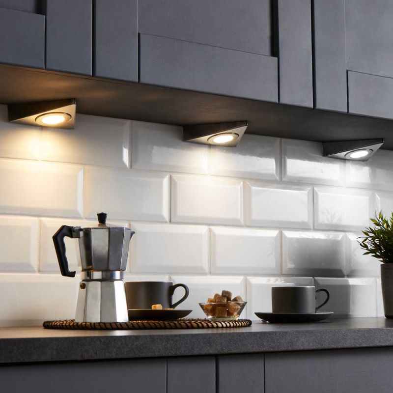 This 1.5W LED triangular under cabinet light has a strong light output with 140 lumens.