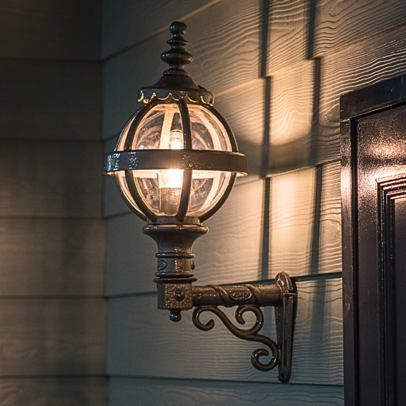 This is the HARTE Victorian Globe Cast Iron Wall Light w/ Decorative Arm.