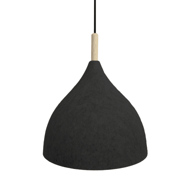 The Red Arrow Sinead Circular Acoustic Pendant in Black is a sophisticated lighting fixture that pairs a bold, modern aesthetic with high-performance acoustic functionality. Its smooth dome shade is crafted from sustainable, sound-absorbing fabric, specifically engineered to reduce unwanted noise and echo in dining areas, lounges, and collaborative workspaces. The deep black finish creates a striking presence, while the natural wood accent at the suspension point adds a layer of organic warmth and tactile detail. Balancing minimalist form with practical utility, the Sinead provides soft, inviting illumination and ensures long-term ease of maintenance, making it a refined choice for interiors that require both visual depth and acoustic clarity.