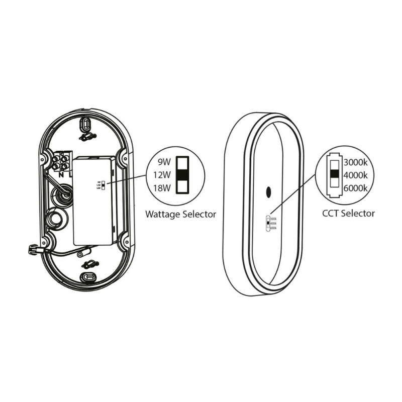 LED Oval Multi Watt Bulkhead CCT 3000K/4000K/6400K SGD